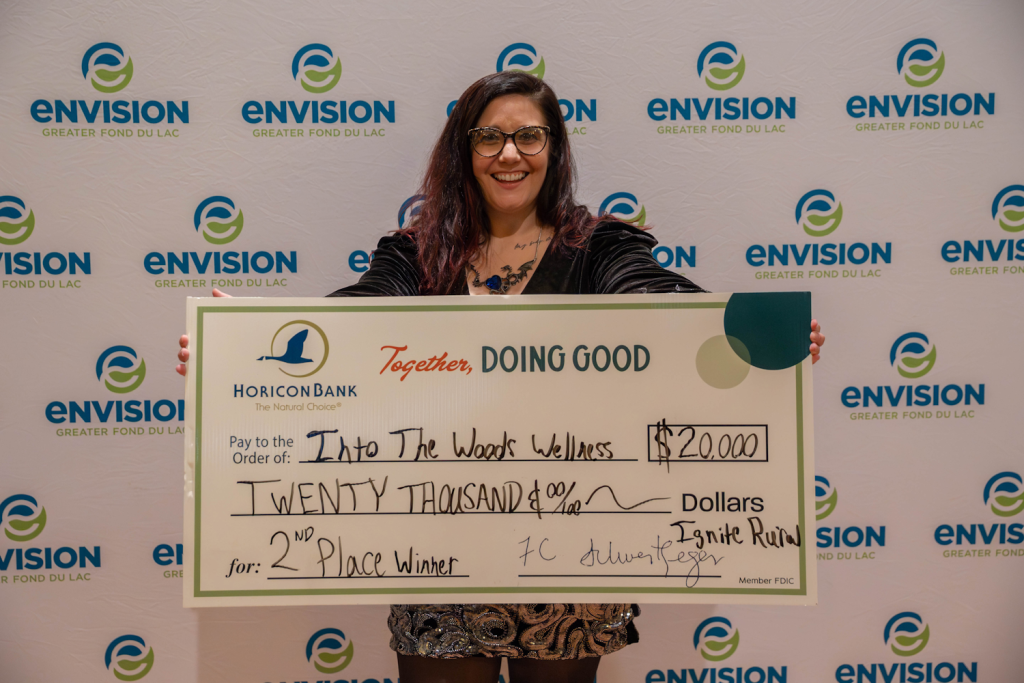 Kaitlyn reflected on her experience, “Winning second place in the Ignite Rural Business Cohort feels both humbling and empowering. This journey has stretched me as a leader and reminded me that healing and entrepreneurship are deeply connected—both require courage, vision, and trust. The funds will help bring Woodie – Into the Woods on Wheels to life, expanding our mission to make wellness mobile and accessible across rural communities. I’m walking away inspired by the collaboration, mentorship, and sense of belonging that Envision Greater Fond du Lac has fostered.”